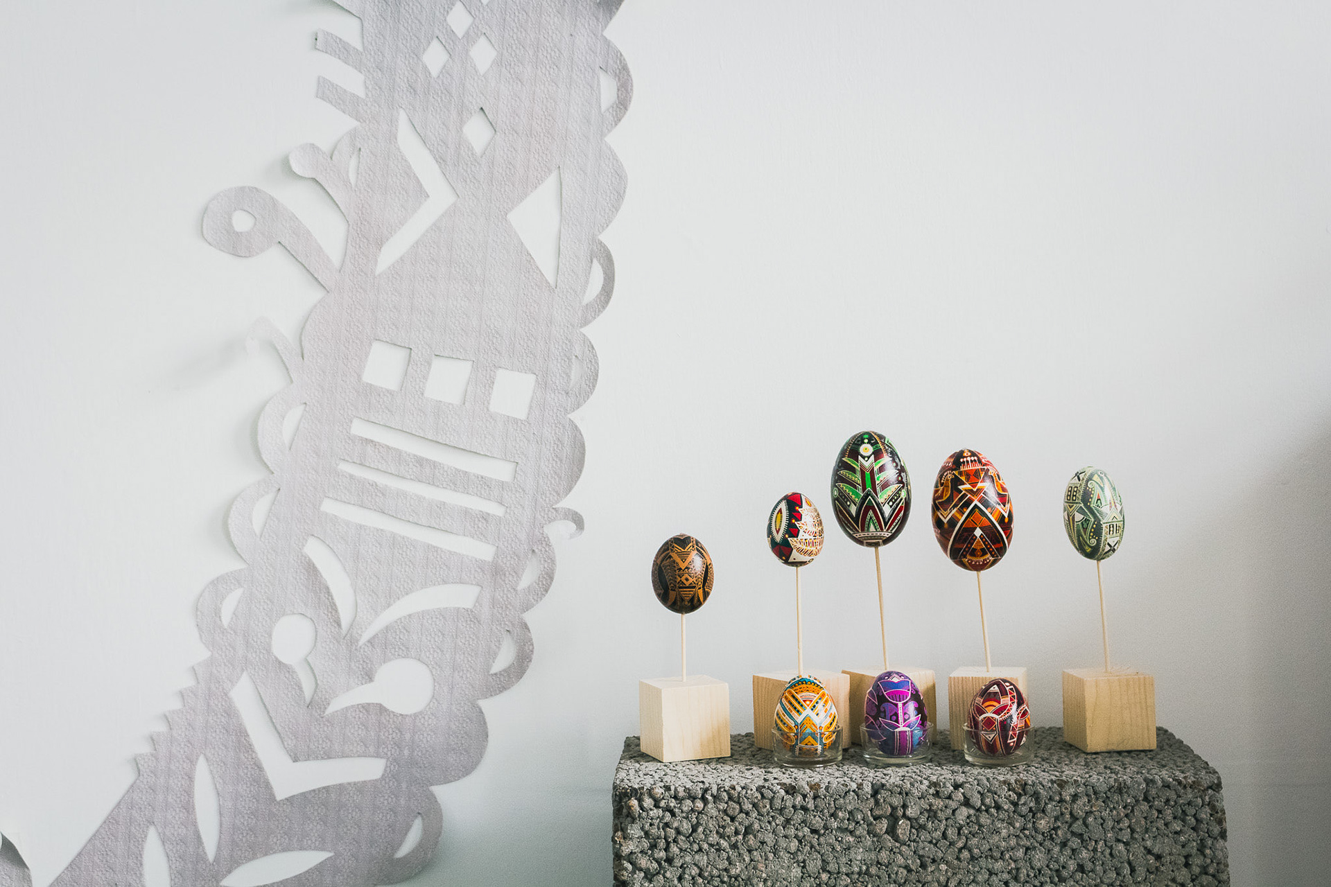 Фрагмент виставки авторської писанки Наталії Янішевської “Симетрія обертання".